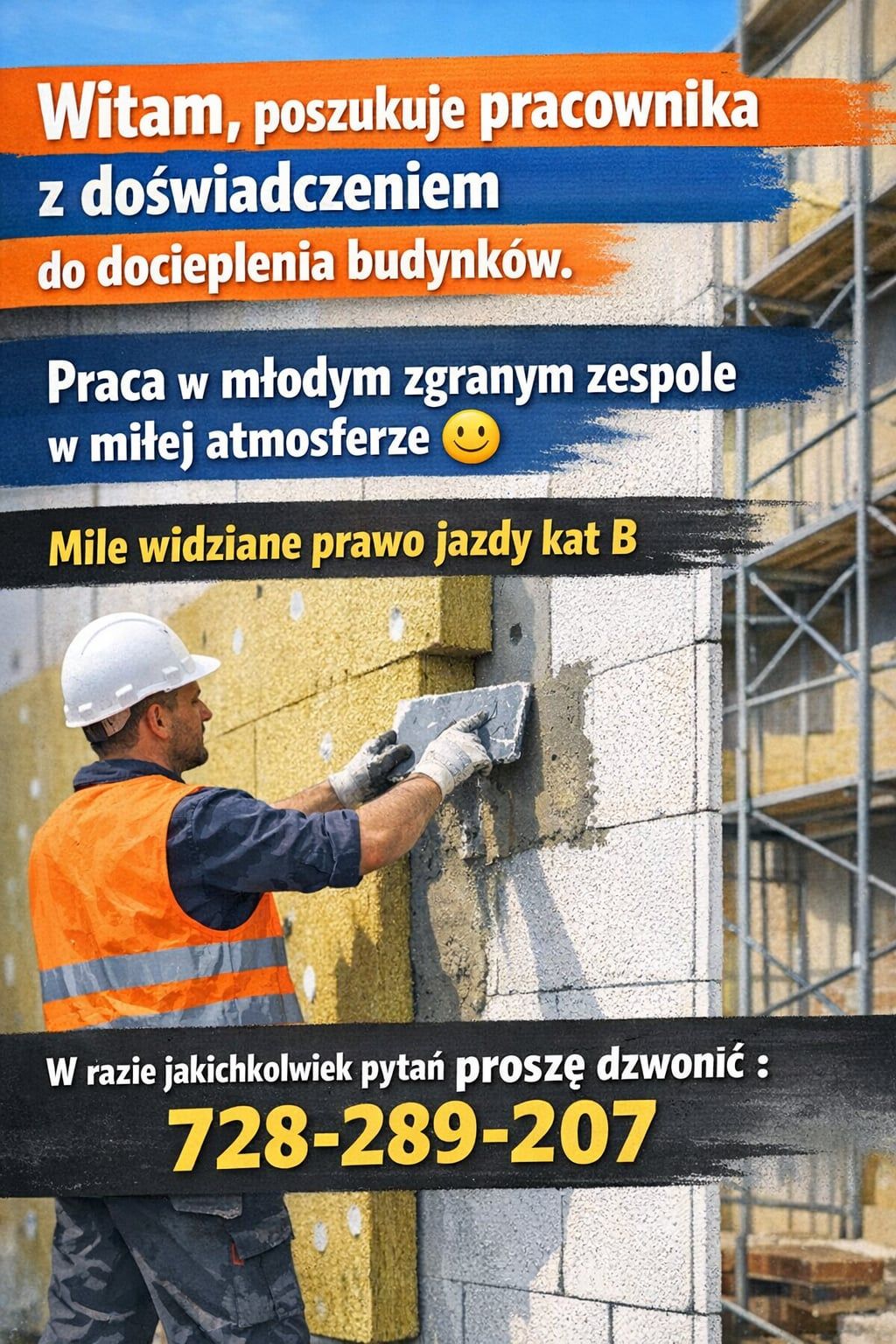 Poszukuję pracownikow z doświadczeniem przy elewacjach budynków stawki zależne od umiejętności
