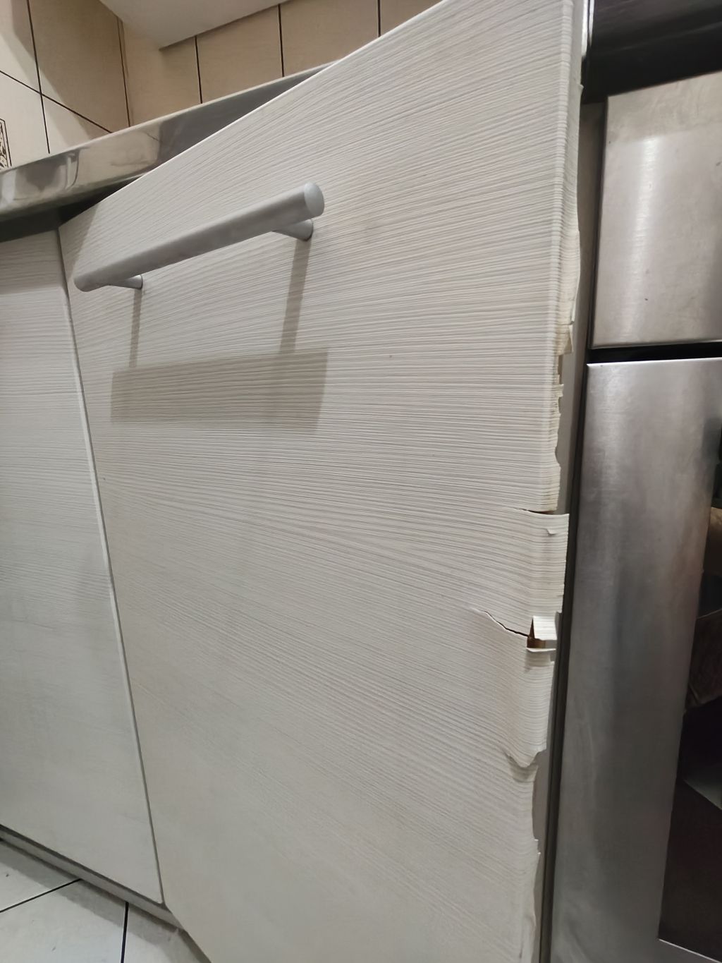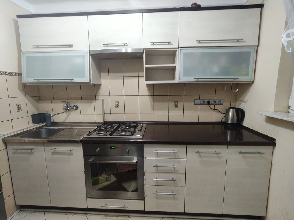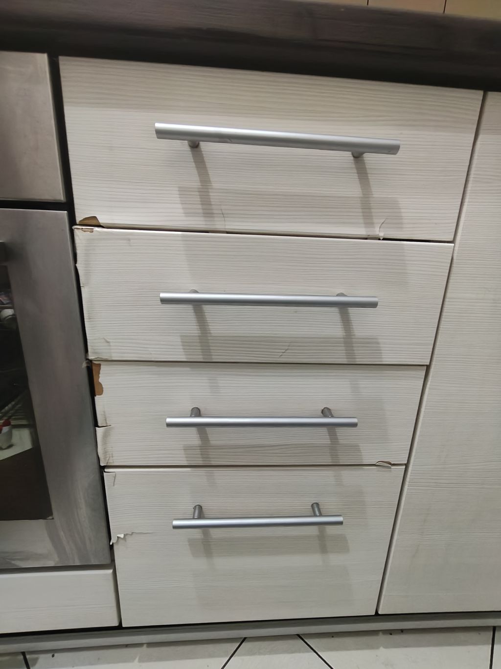 Zestaw mebli kuchennych bez sprzętu AGD (kuchenka gazowa, okap), ledy pod szafkami. Fronty są do wymiany przy szufladach i drzwiczkach trochę popękało, widoczne na zdjęciach. Wymiary długość blatu roboczego 177 cm, szerokość blatu 65 cm, wysokość blatu 87,5 cm. Całkowita długość mebli razem ze zlewem 257 cm. W zestawie również szafka słupek na naczynia, wymiary wysokość 213,5 cm, szerokość 55 cm, głębokość 37 cm. Odbiór osobisty